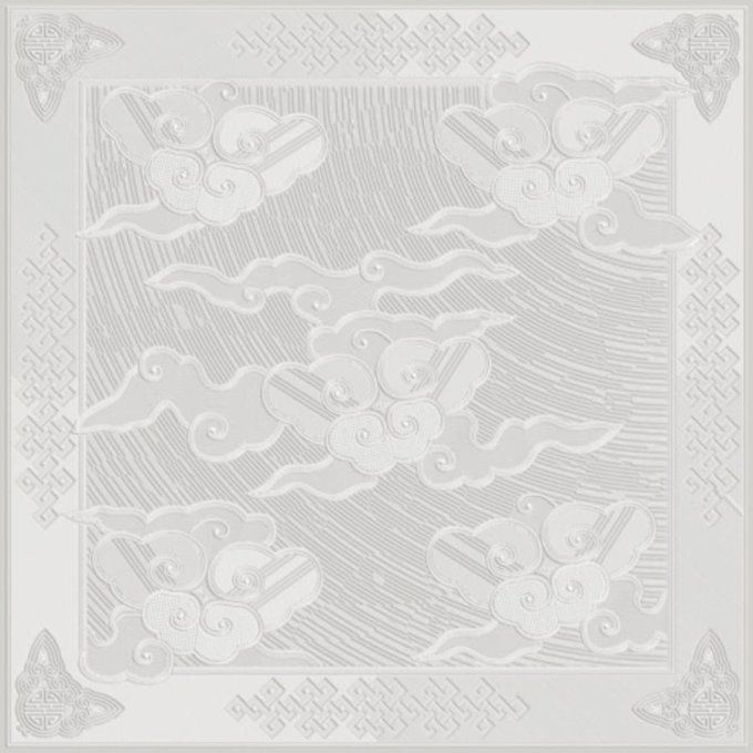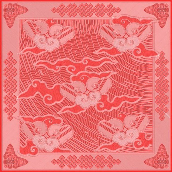 Dans le monde chinois les nuages sont signes de bonheur. Sur ce modèle plusieurs représentation traditionnelles de nuages celle du centre et celle de la bordure, l'idéogramme du bonheur aux angles.