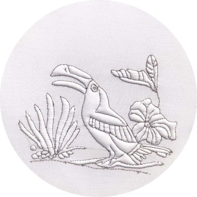 Toucan au Paradis est un kit complet qui vous permet de vous lancer dans le boutis.